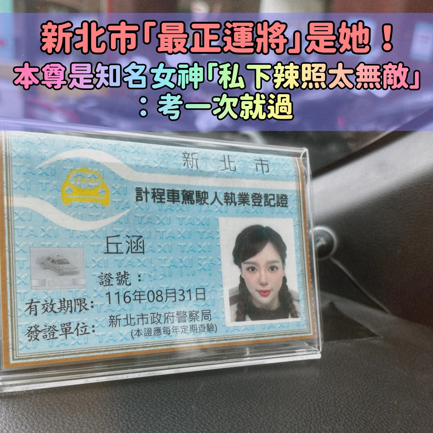 想要搭她的車!新北市「最正運將」駕駛證超Q 前凸後翹好身材「IG辣照曝光」:木曜女神