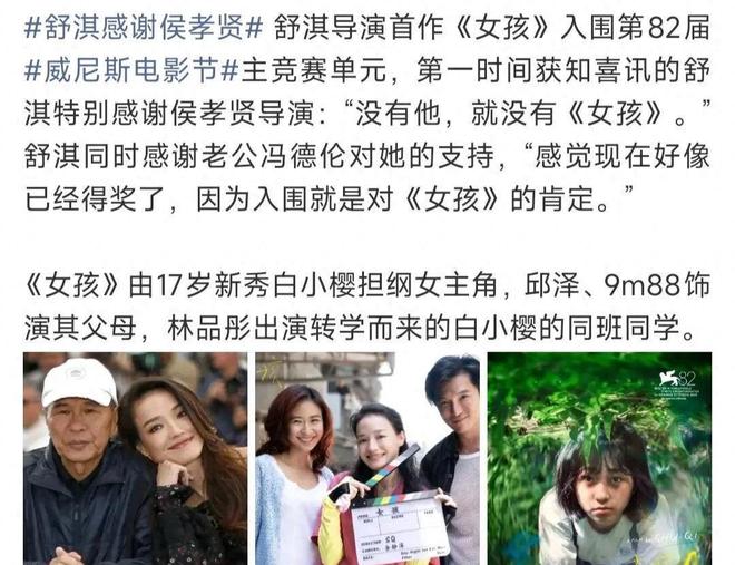 有那麼一句話叫「演而優則導」,用在舒淇身上特別合適,她在電影圈通過很多部作品證明了自己的實力,作為演員深受喜愛。但是現在她又轉換了專業領域,以導演的身份繼續在電影界深耕,而且舒淇一出手就展現了自己在導演方面的優勢,最近舒淇轉戰導演的處女作《女孩》送去國外參展,順利入圍第82屆威尼斯電影節主競賽單元,距離獲獎僅有一步之遙!